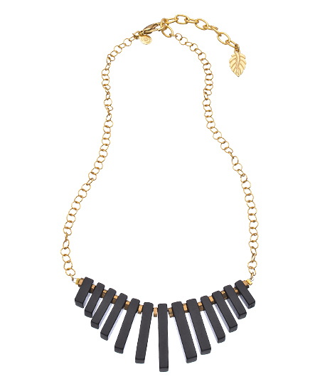 This elegant black keys bib necklace from David Aubrey is perfect for your classic everyday look. A series of matte onyx rectangular bars add modern glamor to this beautiful statement piece. It's sure to attract admiring glances anytime you wear it.