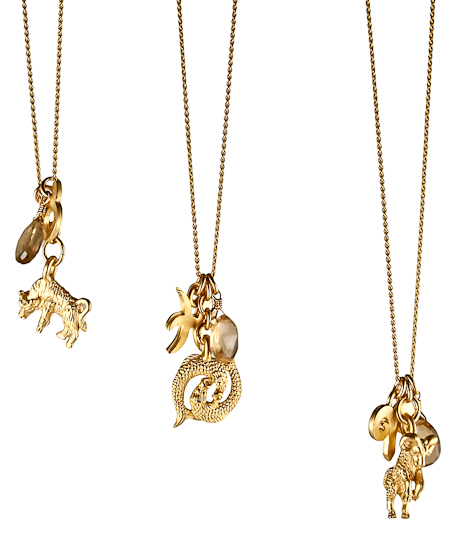 Featuring a small collection of charms, this David Aubrey horoscope necklace is brilliant. A small charm featuring the sign is coupled with a charm of the symbol of the astrological sign. Accentuating these charms is a small beer quartz stone, finishing off this sophisticated piece.