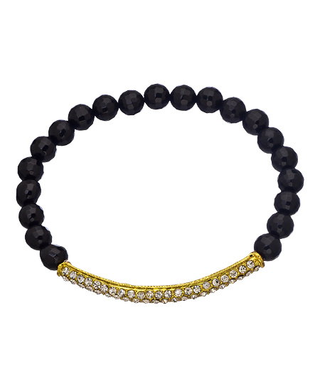 The black onyx crystal pave bar bracelet from Devoted Jewelry is the kind of bracelet that should be a staple in your jewelry collection. The bracelet is beaded with black onyx beads and enhanced with a rounded crystal pave bar in gold color.
