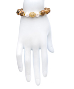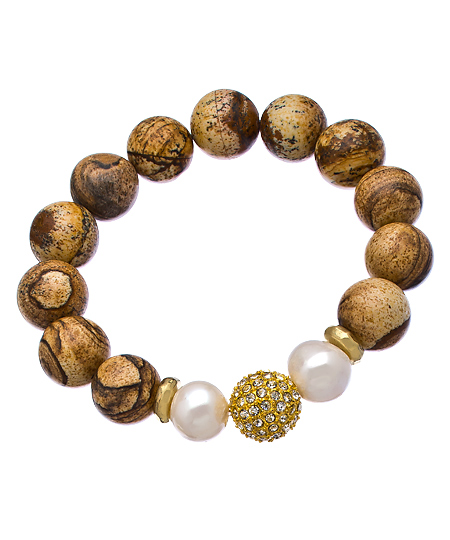 If you're the type to get all wrapped up in a beautiful piece of jewelry, then adorn your wrist with the picture jasper pearl crystal ball bracelet from Devoted. It features perfect picture jasper beads accentuated by two white pearls and a glowing pave crystal ball. This bracelet is filled with edgy glamor and adds a sparkle to your look.