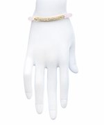 Be pretty in pink with Devoted's rose quartz crystal bar bracelet. A rich strand of genuine rose quartz beads, accented with a twinkling pavé-set crystal bar, makes a colorful style statement you'll love. The stretch bracelet looks hip and trendy worn alone, or stacked in multiples for a powerful color block effect.