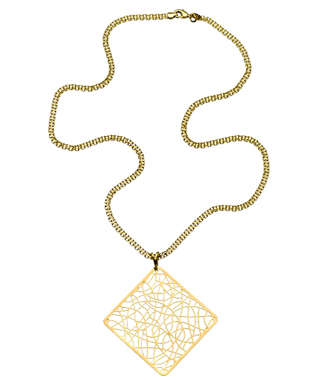 The chain and pendant in the diamond shape filigree pendant necklace are equally impressive. The diamond shaped pendant is intricately cut out and makes a great focal point for the piece. This necklace fastens with a lobster claw closure.