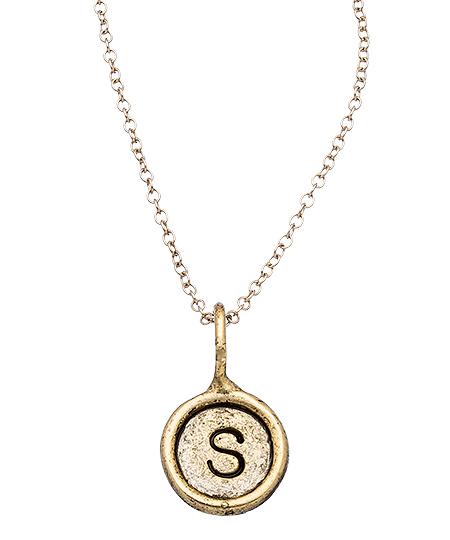 Diana Warner's button initial charm pendant necklace is a beautiful representation of your initial, or that of someone you love. The uppercase initial is embedded in a recessed field of textured metal and with its smooth raised border, resembles a typewriter key. Available in different metals, please specify initial, as well as gold plated, silver plated or rose gold plated when ordering.