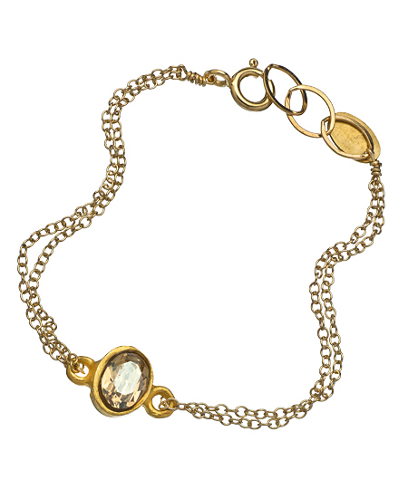 Diana Warner presents this gold and golden shadow Swarovski crystal small oval chain is an understated, elegant addition to your jewelry repertoire. The sparkling, golden shadow crystal is faceted, bezel set and joins two lengths of delicate but strong chain. Bracelet fastens with a spring clasp.