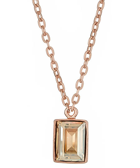 The Diana Warner golden shadow pendant necklace will softly shimmer against your skin. This beautiful bauble features an emerald-cut Swarovski crystal in a smooth setting. A rose-gold plated chain is the finishing touch for this gorgeous piece that closes with a lobster-claw clasp.