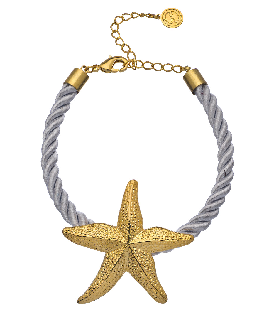Like carrying a bit of the tropics everywhere you go! That's what people are saying about this striking Emily Elizabeth gold and ice blue Sanibel cord bracelet. An oversized starfish, (beautifully realized) graces the silky, twisted cord of mesmerizing ice blue. Bracelet fastens with a lobster claw clasp and features a generous extender.