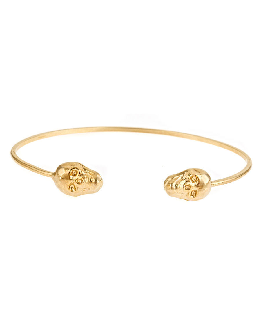 The Emily Elizabeth open skull bangle features an enchanting mix of luxury and whimsy. The two skulls detailing this open bangle are crafted of 14k gold for a look that's more pretty than punk.