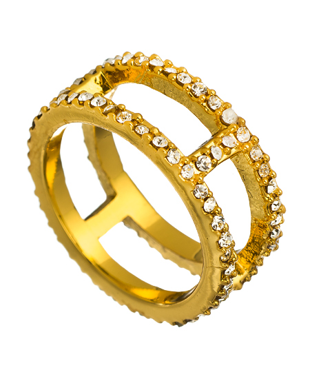 Attract admirers with this striking Cantata ring from Erica Anenberg. Two rows of brilliant Siam crystals are bridged together and set on 14-karat gold plated bands. This glowing ring amps up your look from casual to sophisticated.