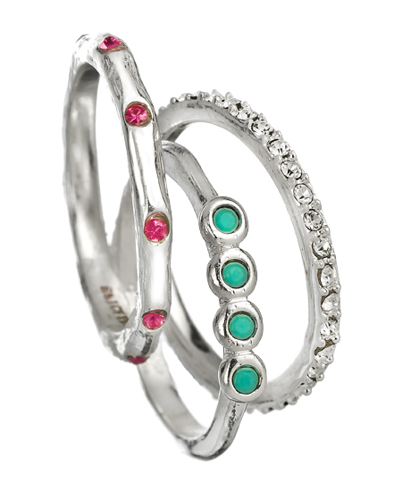 Now you can add a little bling to your ensemble with these charming silver villa shimmer stackable rings from Erica Anenberg.