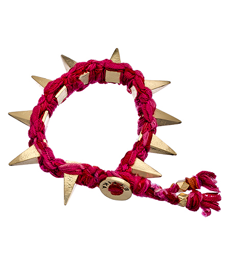 If fuchsia is your color, this Ettika fuchsia vintage ribbon with pyramid spikes bracelet was made for you! The rich fuchsia color provides the perfect backdrop for the gleaming gold pyramid spikes in this bracelet that fastens with a button and loop closure.