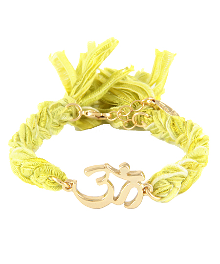 Keep calm all day long with the Ettika vintage ohm charm bracelet. The wasabi hued vintage silk ribbon plays off the gold ohm symbol perfectly. The ribbons frill over the edge of the bracelet to conceal a lobster clasp.
