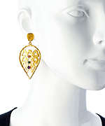 Protect your sense of style with the addition of these stunning hammered shield gemstone earrings from Evelyn Knight. Their tiny gemstone cabochons and intricate, open metalwork design, add a bold presence to your fabulous look. Pair them with their matching necklace for a look that is sure to get you noticed.