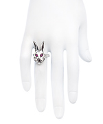 Cause fashion havoc with this sassy bad bunny ring from Femme Metale. The sterling silver rabbit is seeing red with ruby CZ eyes, and catches the attention of all around. The ring is a surefire conversational piece that shows off your edgy side.