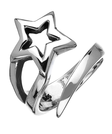 Treat yourself to this charming shooting star ring from Femme Metale. The wrap-around style of the sterling silver ring possesses a distinct whimsical appeal with a star dashing from its tail. You're sure to feel young at heart every time you wear this ring.