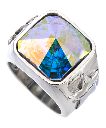 It's hard to decide what we like more about this white opal star shine flashy ring from Femme Metale, the elaborate sterling silver star-studded band, or the gorgeous colored crystal stone at center. But one thing's for sure; together they make a spectacular, sparkling statement piece that's sure to get you noticed!