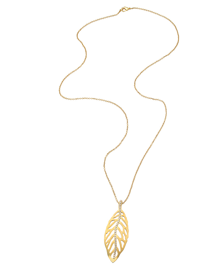 Freshen up with the 'Falling Leaves' necklace from Gala. Dewy with sparkle, the leaf-design pendant is a natural for sprucing up special-time or anytime outfits. It's that go-to piece your outfits have been waiting for.