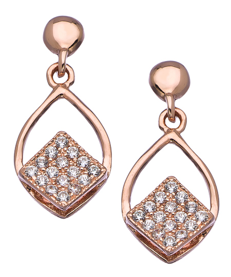 Extraordinary quality in both design and materials make these CZ square and teardrop hoop earrings from Genevive by CZC something special. Regal and elegant, the CZ studded square perches delicately on the twisted teardrop hoop, which is available in your choice of sterling silver or rose gold. You will find many looks complement these lovely earrings, which fasten with a post closure for pierced ears. Please specify rose gold or sterling silver when ordering.