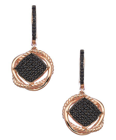 Flawless design and quality materials are the hallmarks of exquisite jewelry - a maxim that Genevive by CZC has taken to heart, especially with these rose gold and CZ round and diamond shapes drop earrings. Sparkling CZs in your choice of black, ruby or sapphire colors form the diamond shape, which is surrounded by circles of twisted and polished rose gold. Earrings have a split hinge closure for pierced ears. Please specify color choice when ordering.