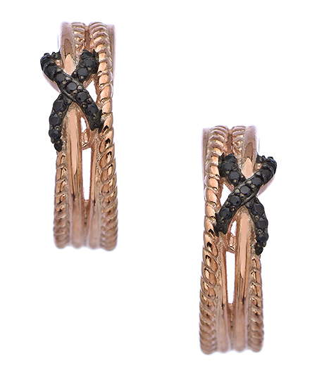 Two rows of twisted gold are artfully embellished with sparkling CZs in these gorgeous Genevive by CZC rose gold and CZ two-row cable X earrings. Available in your choice of black, ruby red or sapphire colored CZs, these diminutive, feminine earrings are the exquisite finishing touch you want. Please make your stone color selection when ordering. Earrings have a post closure for pierced ears.