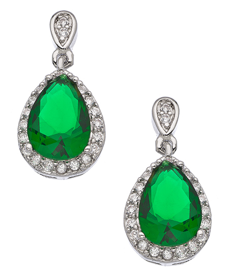 These Genevive by CZC silver clear and teardrop emerald CZ drop earrings could only represent tears of joy - with their shimmering sparkle and rich, luxurious look. Crafted in an attractive teardrop shape and studded with a frame of eye-catching clear stones, these earrings are exquisitely designed and beautifully realized Earrings have a post closure for pierced ears.
