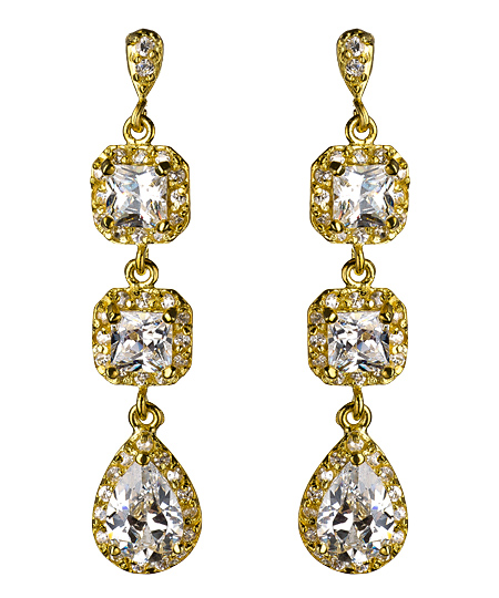 Add these snazzy little square and tear drop CZ dangling earrings from Genevive by CZC to your jewelry collection and you've got something that you can pull out for those oh so special occasions. The gold vermeil earrings feature square and teardrop shaped cubic zirconias. These earrings fasten with a post back for pierced ears.