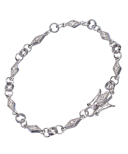 Designed for elegance - this Genevive by CZC sterling silver and CZ three links bracelet is feminine and understated. The perfect sparkle ratio is achieved: not too much for daytime, or classic luxury at night. The bracelet stacks well with others, or makes a lovely solo accessory. Bracelet fastens with a fold over clasp.