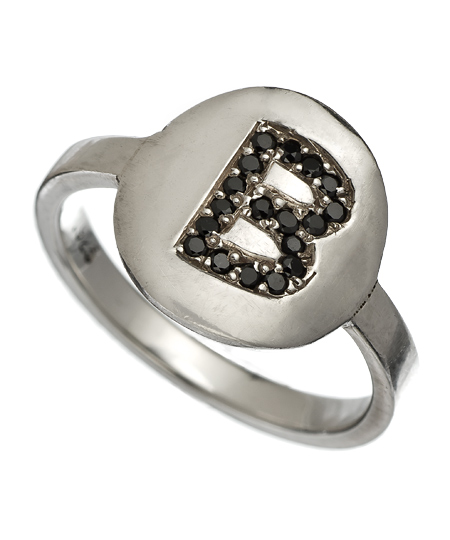 Fancy your name? Let the world know it with this fabulous silver glamor girl ring from Grey Lee! This sparkling ring showcases your initial in a glamorous way with the letter of your choice studded with brilliant black diamonds set on sterling silver. Go on, you know you want to, style it out!