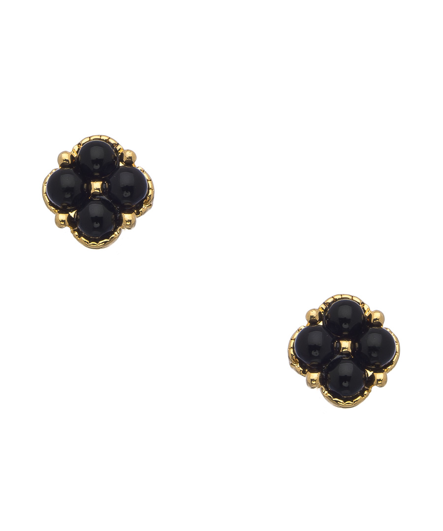 Four tiny onyx stones join to deliver this exquisite pair of gold and onyx stud earrings from Harrison Morgan. Beautiful enough for evening glamor, understated enough for the office, these versatile earrings are a must-have for the modern fashionista. Earrings fasten with a comfort post closure for pierced ears.