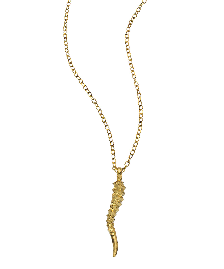 Wear Heather Benjamin's Gazelle horn necklace as proof that when it comes to dazzling jewelry, you've got a few tricks up your sleeve. It's is made from hand-carved bone mini-scriptures and cast out of brass plated 24-karat gold. A portion of the proceeds from the sell of this necklace goes to Tuskusa.com, an anti-poaching organization.