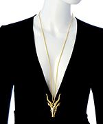 This statement-making Gazelle necklace from Heather Benjamin is great for everyday wear! It's is made from hand-carved bone mini-scriptures and cast out of brass plated 24-karat gold. A portion of the proceeds from the sell of the necklace goes to Tuskusa.com, an anti-poaching organization.