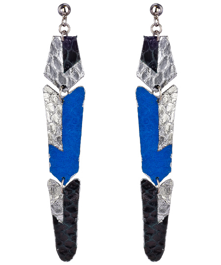 The cobalt rex earrings from Holy Harlot will dress up your look in fearless fashion. The cobalt blue ties in with the silver and black perfectly for a look you won't be able to resist. These earrings fasten with a post back closure for pierced ears.