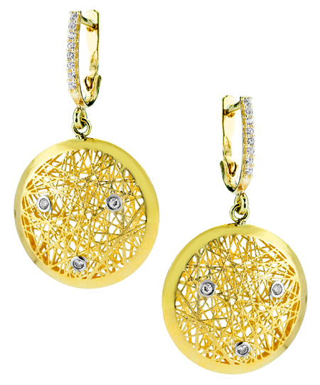 Where else can you find hand crafted elegance like the nest satin high polish earrings from I. Reiss? The diamonds in these artistic earrings are bezel set in the round nest portion and along the bail. These earrings fasten with hinged snap back closures for pierced ears.