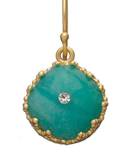 You'll love the elegant way the Indulgems amazonite drop earrings elevate your daytime looks. The fancy bezel detailing in 18k gold plate creates the perfect setting for the turquoise-hued amazonite cabochons. The center of these earring are dotted with teeny crystals. The ear wires are crafted for pierced ears.