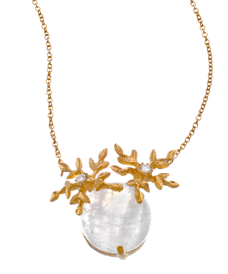 their mystic powers by the light of a full moon, moonstones, as in the one featured on this elegant necklace, glow with a