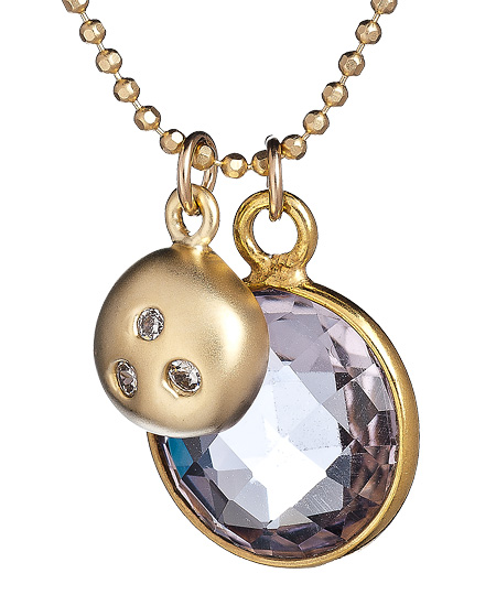 If sleek and unassuming is what you're after, you've hit the nail on the head with this pink amethyst and pebble necklace by Indulgems. The pink amethyst charm dangles next to a smaller pebble charm which has been embellished with sparkling cubic zirconias. The pair offset each other perfectly. Lobster claw closure.