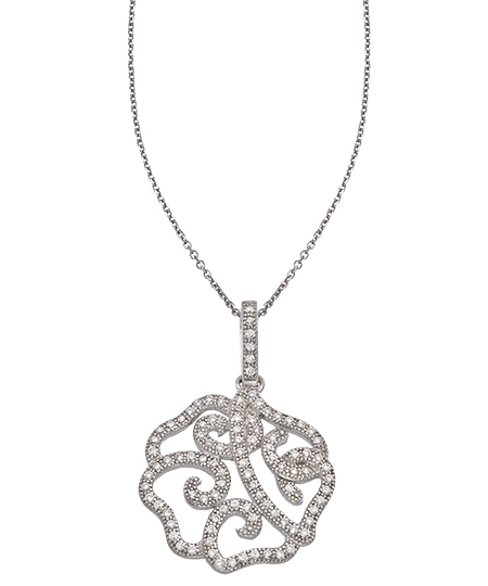 The J Weber sterling silver and Swarovski crystal Amaze pendant necklace lives up to its name beautifully! The amazing maze created from sterling silver and shimmering Swarovski crystals is spellbinding and gorgeous. Wear it as your only stunning accessory - or layer it with other necklace. Necklace fastens with a spring clasp.