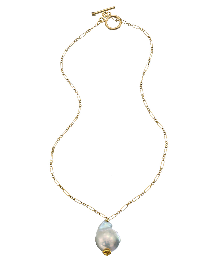 Be the envy of all your friends wearing the baroque pearl pendant necklace by Jacqueline Pinto. The exquisite pearl pendant offers a brilliant look. It's a great accessory for all occasions.