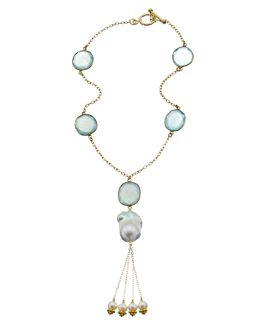 Simply breathtaking elegance is yours with Jacqueline Pinto's chalcedony pearl necklace. Jacqueline Pinto gave the classy necklace a robust gem presence that complements your ensemble. It's bound to become your favorite.
