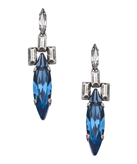 Indulge in the essence of style with these chic, sophisticated, blue marquise crystal drop earrings from Janis by Janis Savitt. Colorful marquise Swarovksi crystals shimmer in between a pronounced silver station. These long, elegant earrings are an easy way to dress up your ensemble.