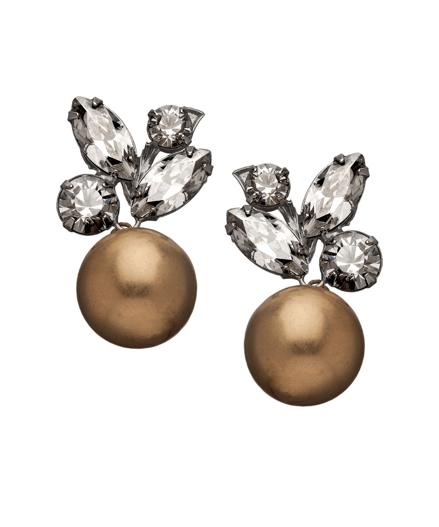 The Janis by Janis Savitt goldtone bead and white crystal earrings will instantly add a festive touch to any special occasion. Each of the matte gold plate beads are exquisitely framed by clusters of white Swarovski crystals. The post backs are designed for pierced ears.