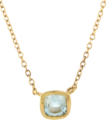 You can’t go wrong when you let this florent aquamarine necklace by Janna Conner cascade down your neck. The 14k yellow gold piece is the perfect accessory for any outfit. A small aquamarine stone sits as the pendant for this charming necklace.