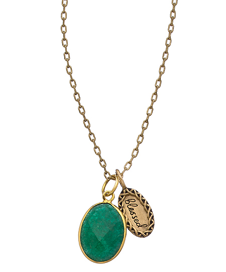 The elegant emerald 'blessed' charm necklace from Jenny Present is a wonderful sentiment of the personal milestones you achieve each day. You'll find a sensuous emerald gemstone and a charm that reads 'blessed', that is sure to take you on your own magical journey. How special is that?