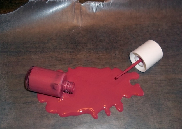 2) Spilled nail polish on something important: This one is simple, all you need is some wax paper and a bottle of nail polish. Spill the nail polish onto a piece of wax paper, and wait for it to dry. Using a hair dryer can speed the process along. Once dry, carefully peel the nail polish off of the wax paper. Finish the process by leaving the spilled nail polish on anything important.