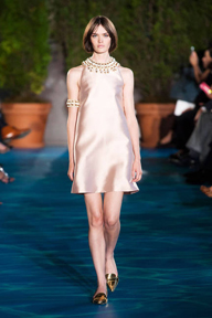 We usually don’t mention the same designer twice within the same category, but this one was a must. Alberta Ferretti’s spring line included so many adorable floral pieces. This fantastically floral dress is the absolute cutest! The wear ability of this frock knows no bounds. Wear it on a date, to a job interview or on the job. Anyway which way you wear this dress, you’ll exude confidence. A gold cuff like the SKINNY by Jessica Elliot Eternity Cuff Bracelet is a great addition to this look.