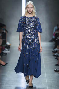 Check out this gorgeous embellished floral dress that was brought to the runway this spring by Dolce and Gabanna! We appreciate the twist that Dolce brought to this floral dress by using sheer material and embellished details. Although this dress is detail heavy, we think that adding a pair of dramatic earrings and a bracelet would help to enhance it even more. The One OAK by Sara Matte Gold Leaf Drop Earrings would make a look like this even more sexy, especially if paired with the Athena Designs Blue Stone Bangle.