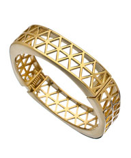 An art print bag, such as this Art Pop clutch by Kindah Khalidy, is perfect for date night. An art print bag allows you to take a risk without over doing it. A simple black dress and a nice pair of black heels create an elegant and date appropriate look. You can further enhance this look by selecting the right jewelry. Gold accessories will add a nice touch to this outfit. For this specific look, I would pair the Vivian Jacob Gold CZ Double Scalloped Earrings and the Matterial Fix Gold Lattice Hinge Bracelet. I would then finish the look off with a natural looking lipstick. I really like Tolède by NARS.