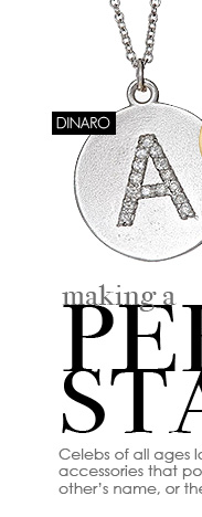 Selena Gomez shows off her love for teen heartthrob Justin Beiber by wearing a silver dog tag that’s engraved with the initial “J.” For a similar look, try this double name tag pendant necklace ($124) by Anna Bee Jewelry. This contemporary necklace is available in gold fill or sterling silver, and each pendant can be engraved with up to five characters.