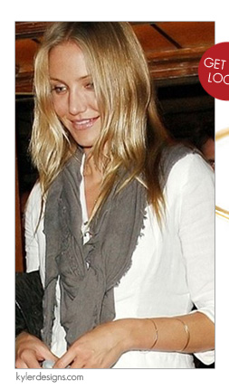 Natural beauty Cameron Diaz wears her heart on her sleeve when it comes to her passion for preserving the environment. In fact, she chooses to accent her California-casual looks with one or two hammered cuffs handmade in San Francisco by sustainable jewelry designer Joy O. Cameron’s made no secret of her love affair with environmental causes so it’s fitting that she’s drawn to this collection featuring recycled precious metals and sterling silver. Not only are these Kyler minimalist cuffs eco-friendly, they are also budget-friendly at $78 each, so you can indulge yourself in guilt-free shopping and select a few to wear in multiples. Max & Chloe carries these Kyler cuffs are in 14k gold fill, recycled sterling silver or 14k rose gold fill.