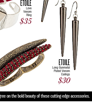 The “Love Venom” ring ($35) and necklace ($40) by Etoile offer a contemporary take on the trend with a striking and minimalist design.