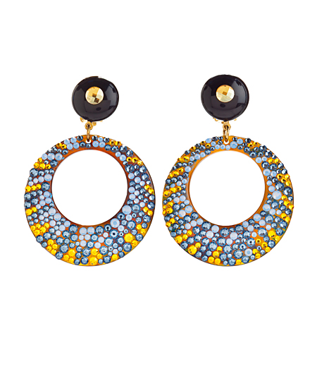Get ready for fun with these glamorous swarovski crystal hoop earrings from Jimmy Crystal. They feature shimmering blue and yellow crystals in a gradient pattern for a dazzling effect. The earrings come with clip-on posts for non-pierced ears.